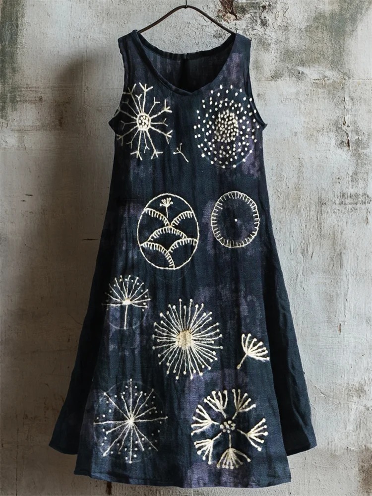 Floral Blooming Japanese Sashiko Linen Tank Dress